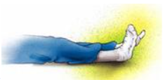 - Poziție culcat pe spate cu ambele picioare întinse și la 30-40 grade față de orizontală;