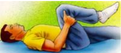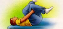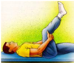 - Faceți flexia genunchilor pe abdomen apropiind genunchiul de piept și ridicând șezutul de pe sol;