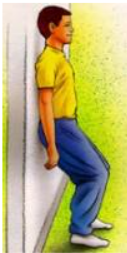 - Picioarele puțin depărtate și situate puțin anterior de perete;