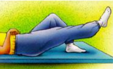 - Poziție culcat pe spate cu un picior flexat din genunchi, și celălalt întins;